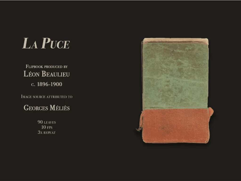 Between the years 1896 and 1901 an obscure Parisian bimbelotier (a maker of trinkets and playthings) named Léon Beaulieu produced a series of what we today call flip books. Some of these source films are quite well known, such as Edison’s “The May Irwin Kiss.” But thanks to the exhaustive research carried out by Thierry Lecointe and Pascal Fouché, we have confidently identified the image sources for many of the books—lost early films of cinema magician Georges Méliès, as well as Gaumont, Skladanowsky, and Pathé. Many of these flip books reveal glimpses of films that have been lost for more than a century and, in some cases never known at all.